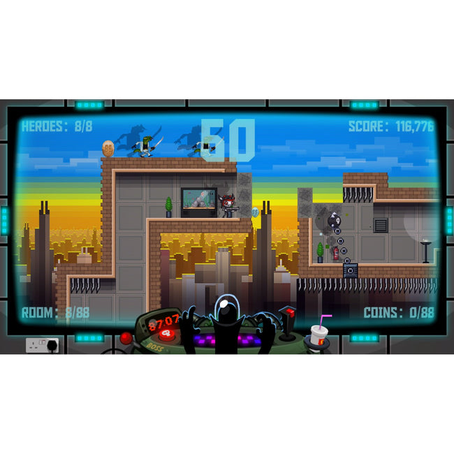 88 Heroes is a chaotic 2D platformer that is as fun to watch as it is to play, where each level completed or untimely death brings a new uniquely skilled hero into the action. With just 88 minutes to complete all 88 levels, you’ll need every one of the 88 heroes to stop the dastardly Dr. H8 destroying the Earth!