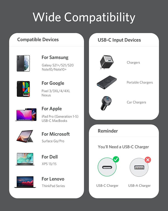 - Fast Charging: Supports a max power output of 100W when paired with a 100W or above wall charger to power up virtually any USB-C device, including phones, tablets, and laptops. (This cable does not support media display.)