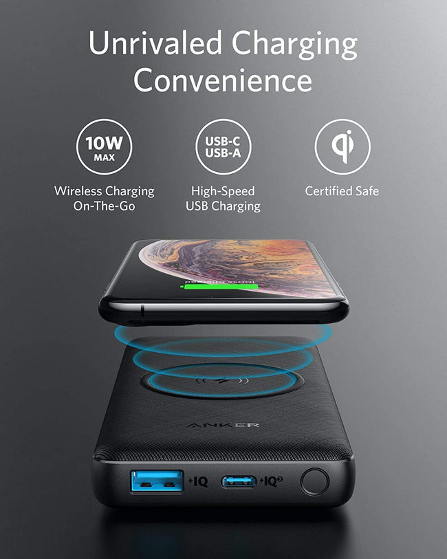 Anker Power Bank PowerCore III 10K Wireless Portable Charger with Qi-Certified 10W Wireless Charging and 18W USB-C Quick Charge