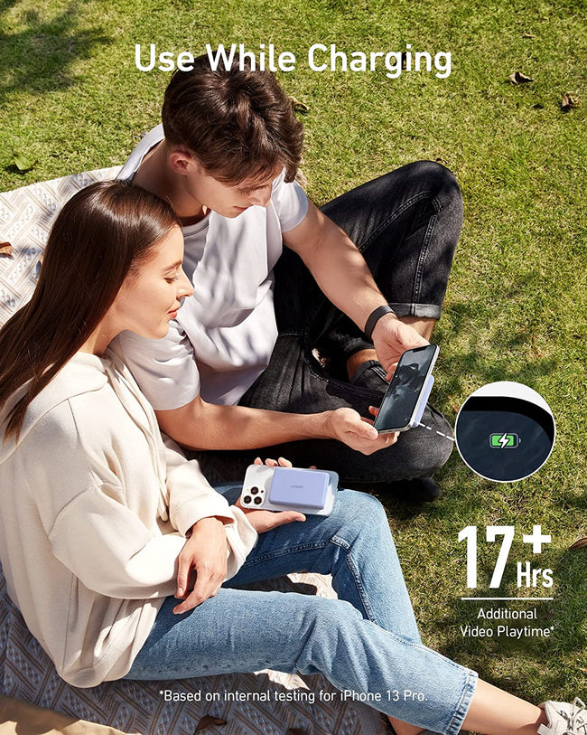 - Anker Power Bank PowerCore Magnetic 5K 521 Magnetic Battery, 5000 mAh Magnetic Wireless Portable Charger with USB-C Cable - Violet