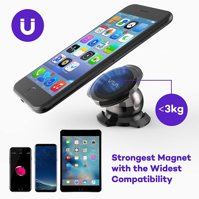 VAVA Magnetic Phone Holder for Car Dashboard with a Super Strong Magnet for iPhone 7/7 Plus/8/8 Plus/X/Samsung Galaxy S8/S7/S6 and More - Black