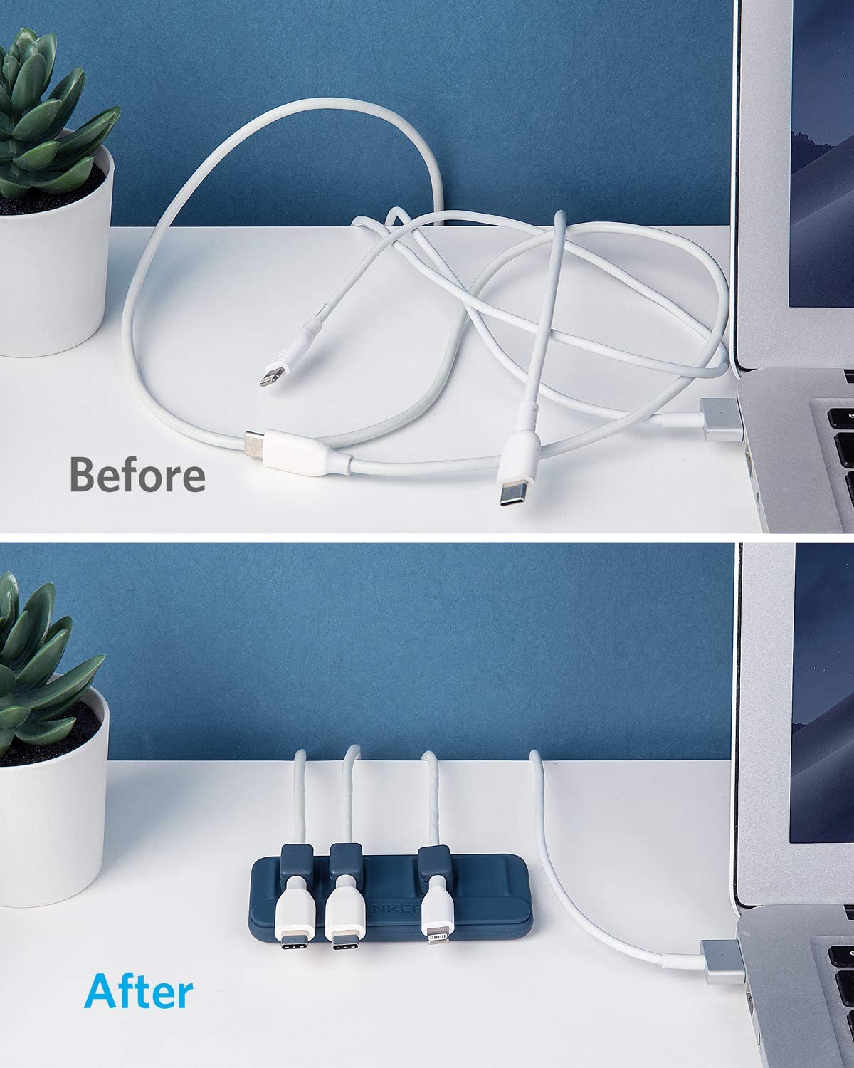 No matter what 3.5 mm cables are cluttering up your desk—be it Lightning, MagSafe, USB-C, or others—the magnetic cable holder keeps them out of your way for a clutter-free workspace.