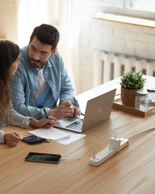 Use the power strip’s PowerIQ-enabled USB ports to charge your phone or other mobile devices. Fully charge an iPhone 11 in less than 2.5 hours—that’s a full hour faster than with an original 5W charger.
