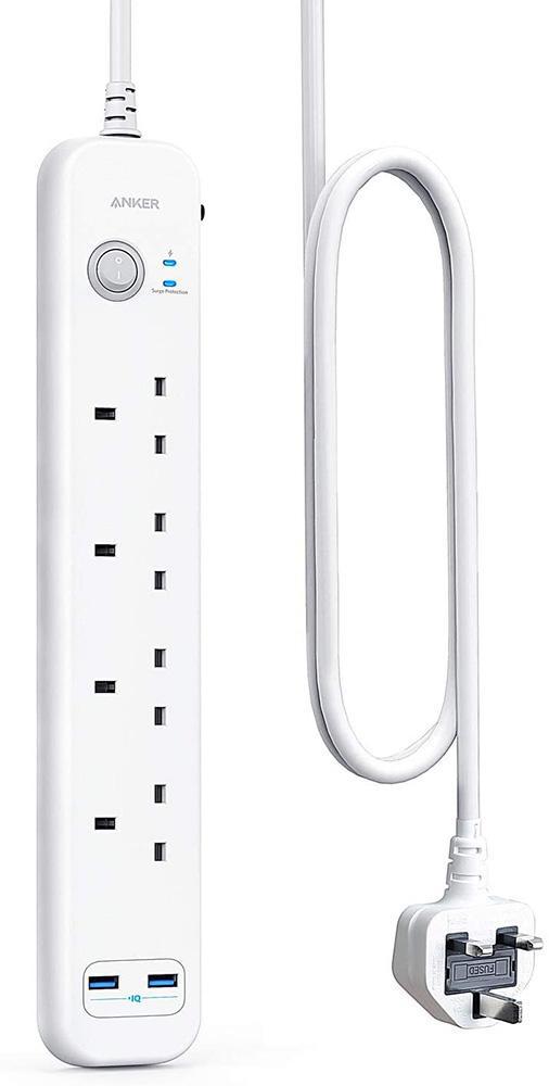 Anker Extension Lead 2M with 2 USB Ports and 4 Wall Outlets, Power Strip with USB Charging and Surge Protection for Home, Office