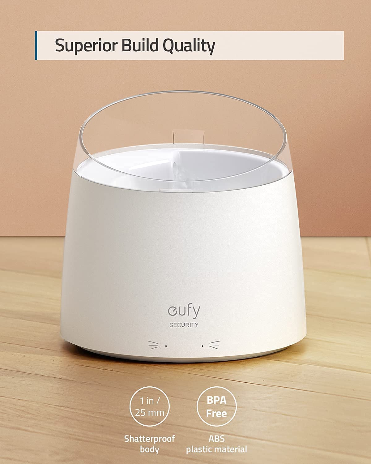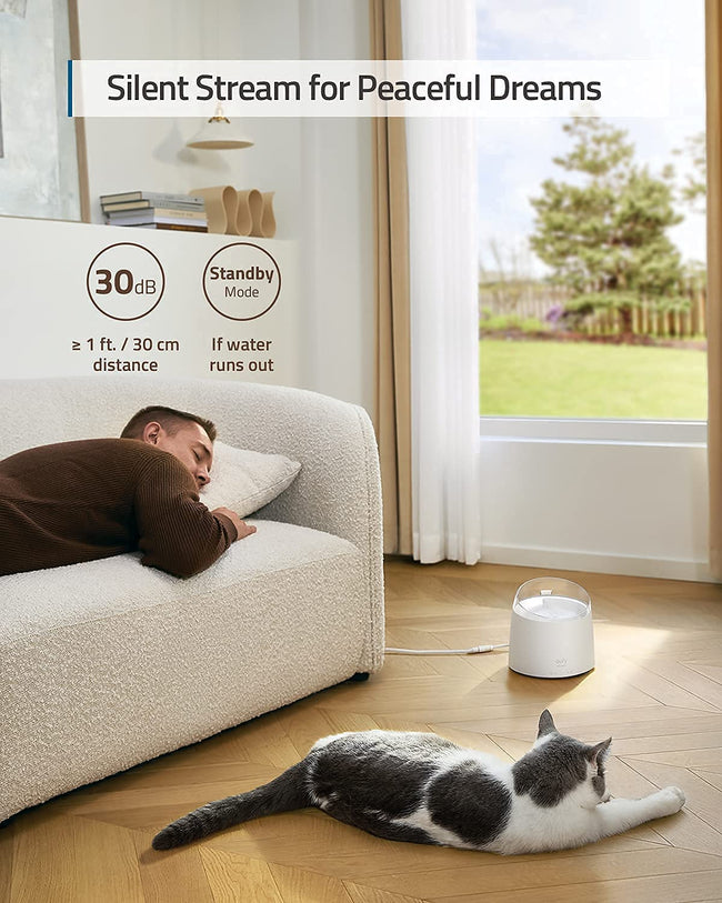 You Won't Hear a ThingGo ahead and snooze thanks to eufy Pet Water Fountain's peaceful 30 dB operating volume. |