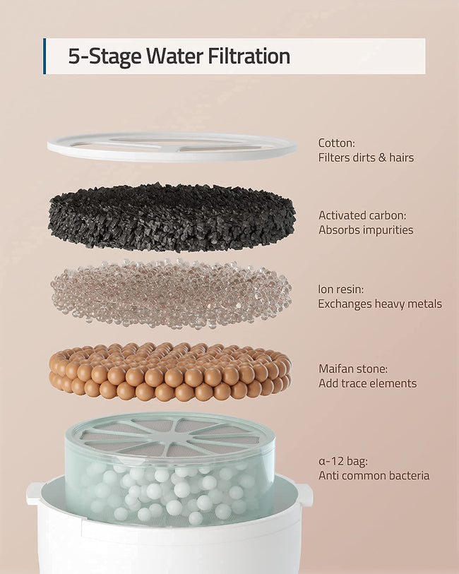 Ensure Every Drop is PureA powerful 5-tier water filtration system whisks away dirt and hairs to keep your pet healthy. |