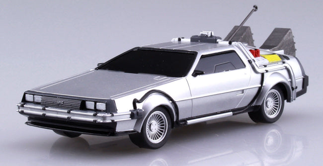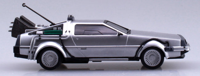 This easy-to-assemble model kit of the amazing DeLorean time machine as seen in the classic 1985 film "Back to the Future" features pull-back action! It'll be about 10.5cm long once assembled. Molded in gray and black plastic.
