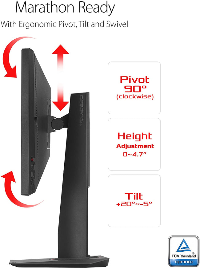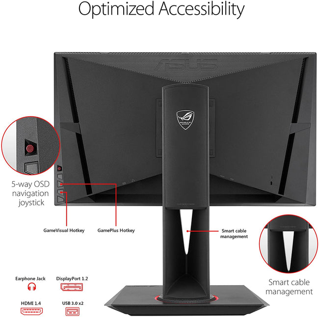 - 24 Inch Full HD 1920x1080p panel with a 1ms response time and overclocked refresh rate up to 180 Hz embraces ROG standards and design