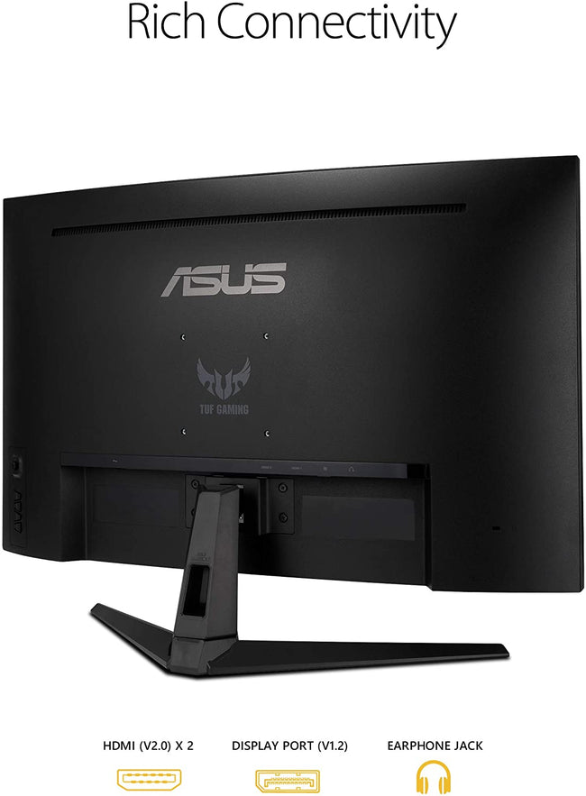 ASUS Monitor TUF Gaming VG32VQ1B 32" 2K HDR Curved Monitor - WQHD (2560 x 1440), 165Hz (Supports 144Hz), 1ms, Extreme Low Motion Blur, Speaker, FreeSync Premium, VESA Mountable, DisplayPort, HDMI