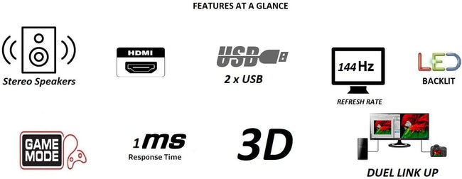 - Ultra smooth action with 144Hz rapid refresh rate and 1ms (GTG) response time
