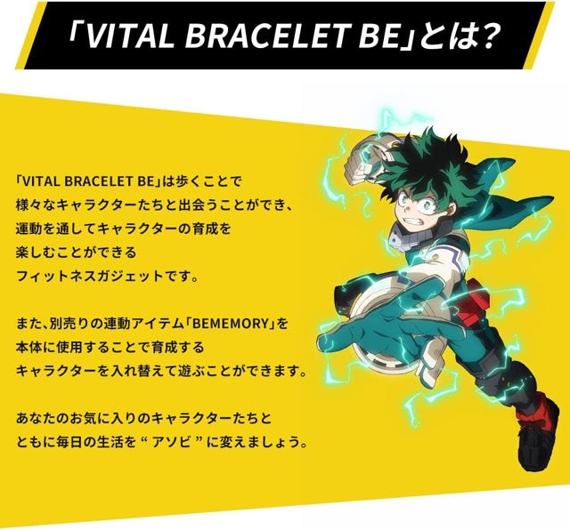 - From the wearable LCD toy that moves your body and turns into an Assortable shape, the VITAL BRACELET BE Series, comes a limited edition model from the TV anime "My Hero Academia" Special Set!