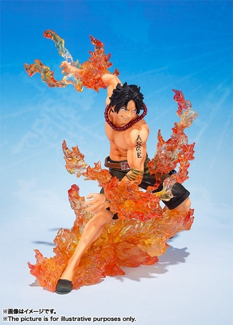 This amazing "Figuarts ZERO" figure of Portgas D Ace from "One Piece" captures him in an incredibly dynamic pose, surrounded by flames and grinning fiercely as he prepares to attack! Clear parts add to the drama of the presentation. If you missed out on this awesome figure before, now's your chance -- place your order today!