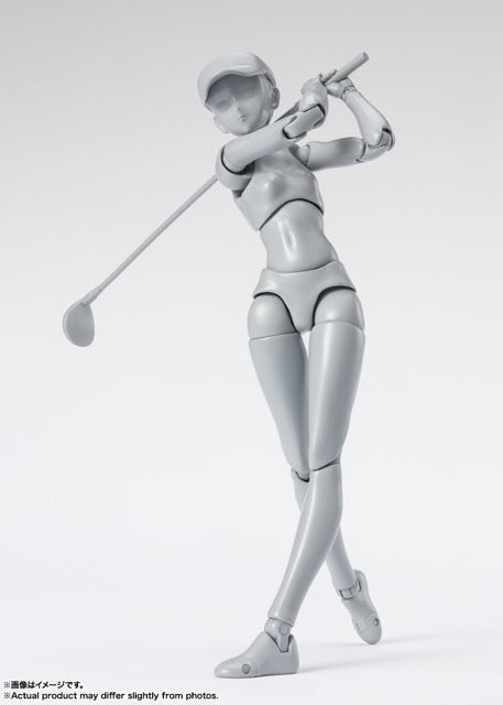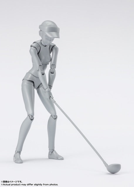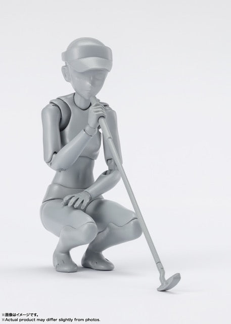 Bandai's "S.H.Figuarts" Body-chan is back -- this time in a golf-themed set! She's ready to help improve your drawing skills, and is happy to get into just about any pose you'd like; this version is accompanied by a range of golf accessories! Her range of motion is wide enough to duplicate any phase of the swing process, from address to finish, and she comes with a driver, iron and putter. Crouching calf parts are included to display her reading the green line, and she comes with plenty of interchangeable hands and other accessories such as golf balls and a sun visor. Her Tamashii Stage base is even colored like the rich green grass found on a golf course! Order her for your own collection today!