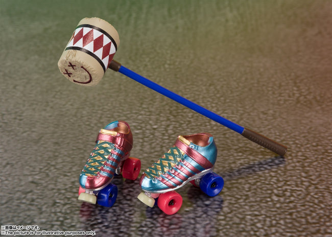 The fan-favorite DC Comics character Harley Quinn rejoins Bandai's S.H.Figuarts action-figure lineup, as seen in her newest cinematic outing "Birds of Prey (And the Fantabulous Emancipation of One Harley Quinn"! Her gleaming golden overalls with the harlequin pattern are carefully reproduced, and she comes with two interchangeable heads, both with digital coloring for a truly impressive appearance! She also comes with her mallet and a pair of roller skates that can be swapped out with her golden boots. Add this fierce femme fatale to your collection today!