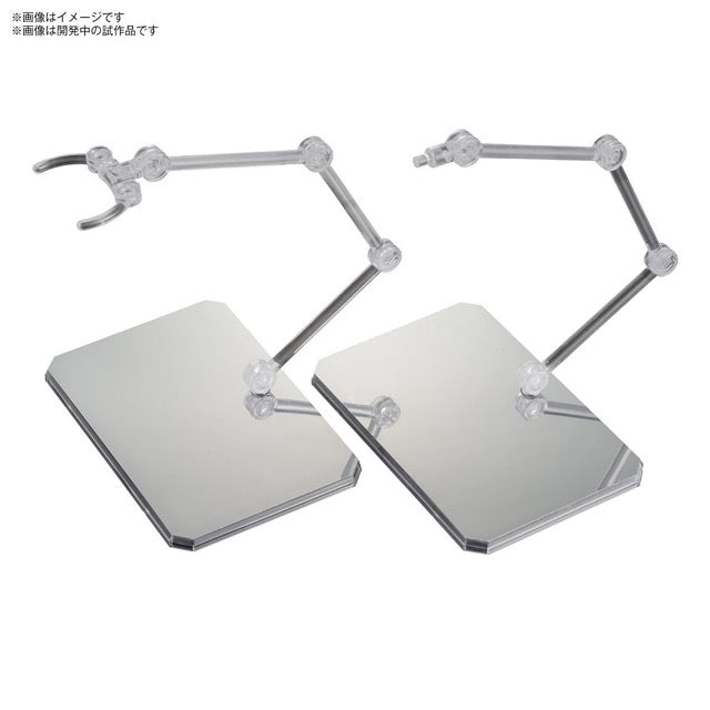 Bandai's extremely useful Action Base 6 (Clear Color), which is perfect for displaying small plastic models, is now available as a set with mirror stickers that expand the range of your display options! Use the mirror stickers to enjoy different angles of display. A protective film is attached to the mirror sticker, so you won't have to worry about fingerprints while you're putting the sticker in place, and an auxiliary sticker for peeling off the protective film is included as well. You'll get two bases in the set. Order yours today!