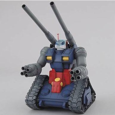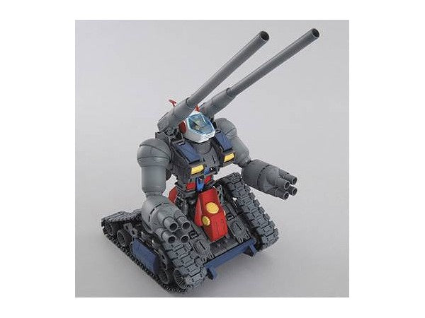 A fusion of a tank with the upper body and arms of a Mobile Suit, the Guntank was the first Earth Federation Mobile Suit produced under "Project V." It served admirably protecting White Base and fighting alongside Gundam and Guncannon during the One Year War in the 1979-80 "Mobile Suit Gundam" anime. This Master Grade release of the prototype artillery Mobile Suit comes in snap-fit plastic parts molded in color and will be fully poseable upon completion. It features suspension caterpillar treads that rotate realistically and has suspension arms inside the treads that allow for it to be displayed traversing over uneven terrains, plus its head console lights up through the use of an included LED unit (two coin batteries required, not included).