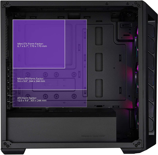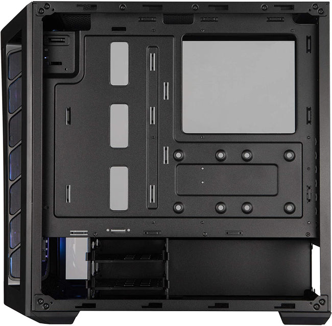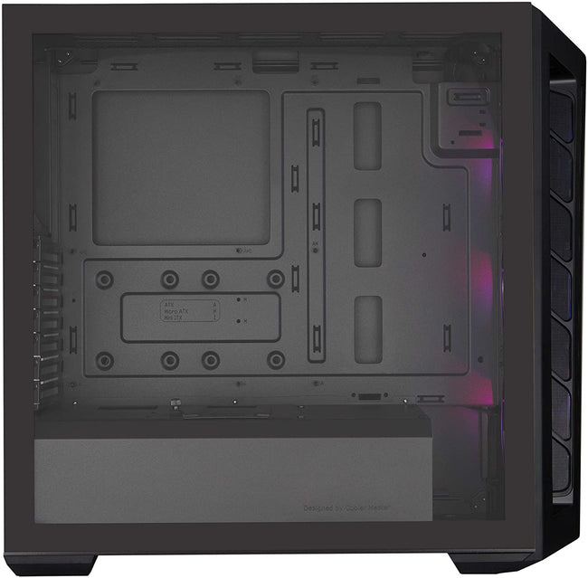 The MasterBox MB511 ARGB ATX PC case, systems built for high demand gaming can breathe easy through the CM signature Fine Mesh makes up the entire front panel, providing generous airflow while simultaneously filtering out dust. Along with the aggressive intakes in front, there is also ventilation on the top panel for added thermal support. The internal layout was engineered for high compatibility for the latest and future gaming hardware upgrades. Supplemented by out-of-the-box ARGB lighting.
