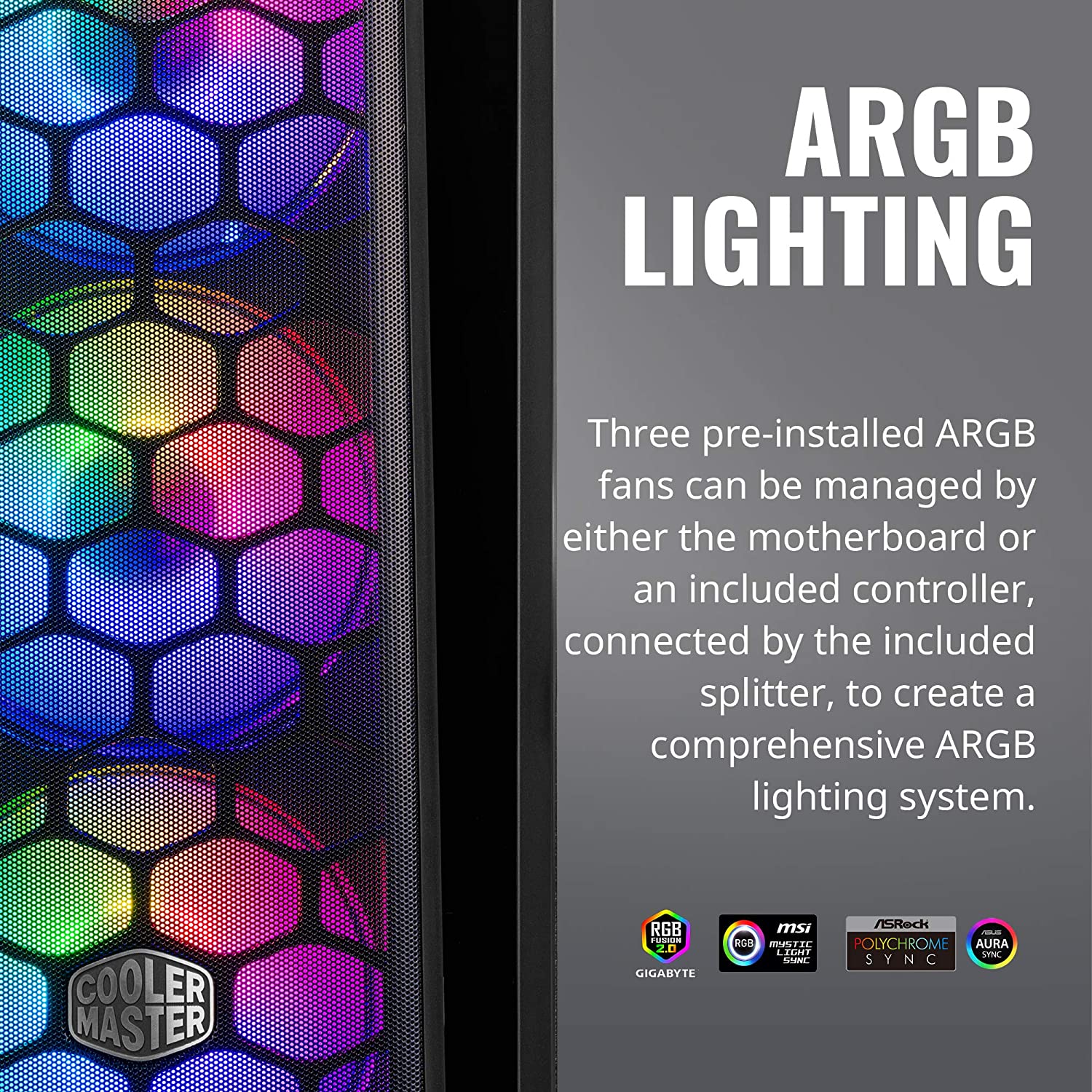 Cooler PC Case Master MasterBox MB511 ARGB ATX Mid-Tower with Three 120mm ARGB Fans, Fine Mesh Front Panel, Mesh Side Intakes, Tempered Glass & ARGB Lighting System