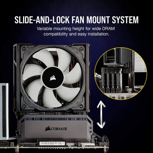 - Intuitive slide-and-lock fan mount system: Variable Mounting height for wide DRAM compatibility and easy installation.