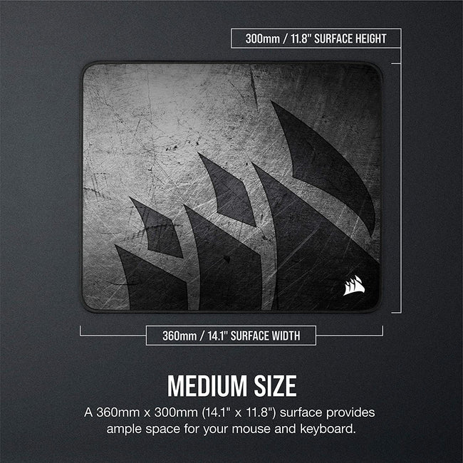 MEDIUM - Game on a 360mm x 300mm (12.6” x 10.6”) surface optimized for high-performance gaming mice and 3mm thick construction.