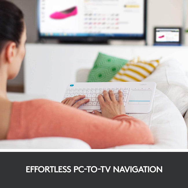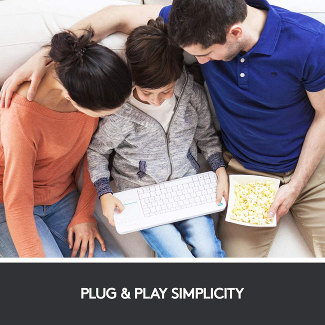 Logitech Keyboard K400 Plus Wireless Touch Keyboard with Built-In Touchpad for Internet-Connected TVs, Windows PC (White)
