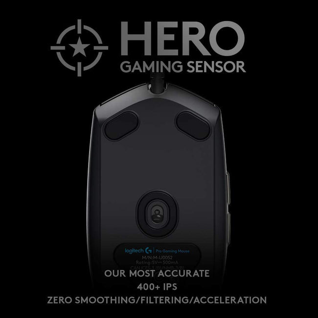Logitech Mouse G Pro Hero Wired Gaming Mouse, 12000 DPI, RGB Lightning, Ultra Lightweight, 6 Programmable Buttons, On-Board Memory, Compatible with PC/Mac - Black