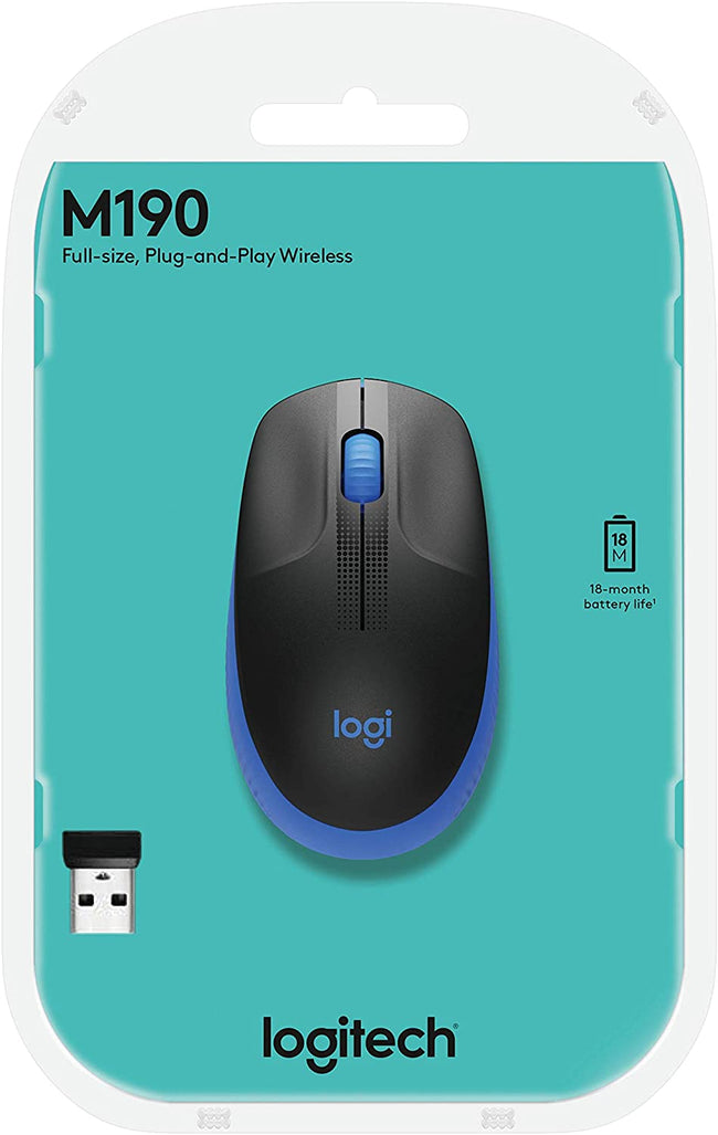 Logitech Mouse M190 Wireless Mouse Full Size Comfort Curve Design 1000Dpi - Blue