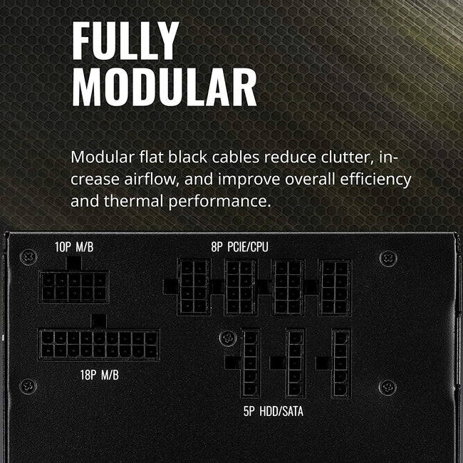 Fully ModularModular flat black cables reduce clutter, increase airflow, and improve overall efficiency and thermal performance. |