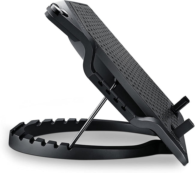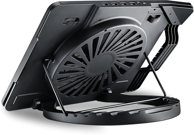 The Cooler Master NotePal ErgoStand III is a premium ergonomic laptop cooling stand that provides 6 levels of incline for the perfect viewing or typing angle. A large, 230mm silent fan provides excellent airflow and 4-port USB hub expands device connectivity.