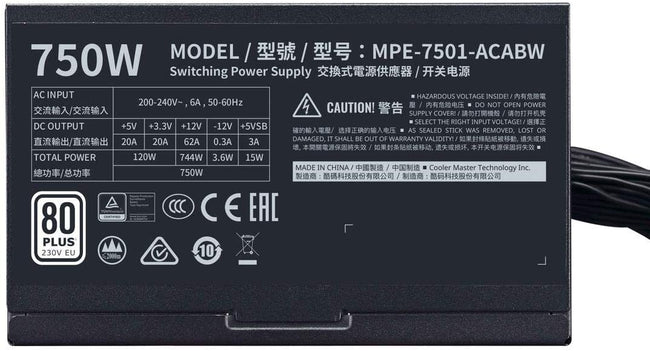 - Cooler Master PSU MWE 750 White 230V - V2 Power Supply Unit, UK Plug - 80 PLUS 230V EU Certified, Quiet 120 HDB Fan, DC-to-DC + LLC Circuit with Single +12V Rail