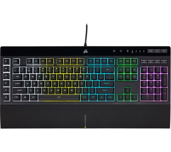 Corsair K55 RGB PRO is a stylish RGB-backlit gaming keyboard offering high precision switches and six programmable macro keys. Light up your desk with five-zone dynamic RGB backlighting and sync it with your other Corsair devices.