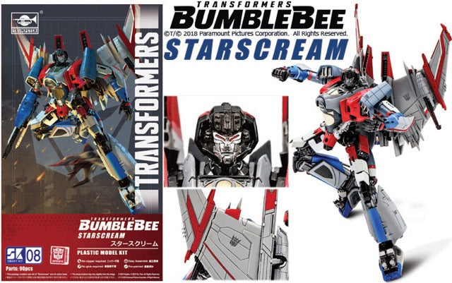 As seen in the 2018 film "Transformers: Bumblebee," Starscream gets a new plastic model kit from Doyusha! He's posable after assembly and is armed with a blaster; assembly is easy, no glue is required, and some parts are pre-painted, too. A display stand is included. Order him for your own collection today!