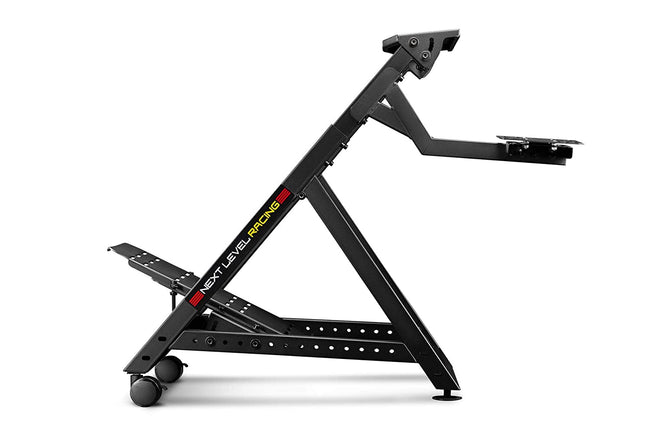The Next Level Racing Wheel Stand DD is the strongest and most rigid, adjustable, highest quality and feature-packed wheel stand the market has ever seen. We have used extensive customer and professional feedback to ensure the DD raises the benchmark for wheel stands in terms of quality, design and functionality. Introducing laser-cut and robot-welded carbon steel in a stealth Matte Black finish for ultimate rigidity as well as look. The Wheel Stand DD is the next level of wheel stands, designed and engineered to be the strongest and most feature-packed. The Wheel Stand DD is the first to withstand the strength of direct drive wheels, professional pedal sets and include handbrake support. The Wheel Stand DD is a professional grade product for the serious sim racers using high-end equipment. The stand is engineered and extensively tested for use with Direct Drive wheels, Professional pedal sets, high-end Thrustmaster and Fanatec wheels, shifters and even handbrakes.