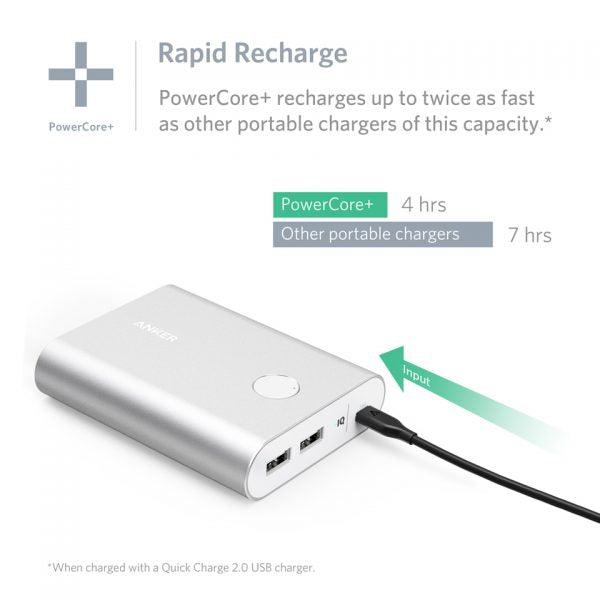 Anker PowerCore+ 13400 Premium Aluminum Portable Charger with Qualcomm Quick Charge 3.0 (Silver)