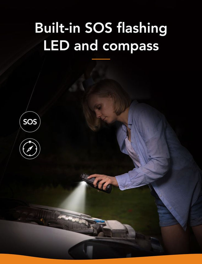 • The Lifesaver: Light up the night with the high-intensity LED lamp, charge your phone with two high-speed USB ports, and find your way with the built-in compass.