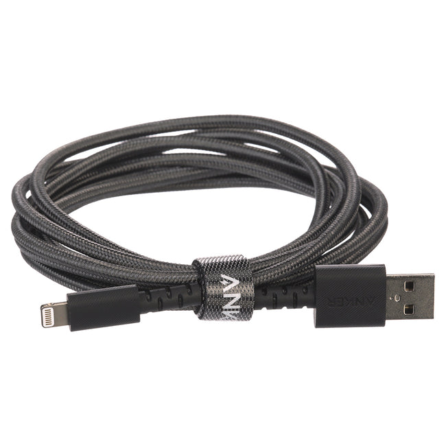 Anker PowerLine Select+ 6ft Lightning Cable Staying Power: Lasts 15x longer than ordinary cables-proven in a laboratory environment to withstand 15000 bends. Fast Charging: Wide-diameter wires and reduced cord resistance maximize charge speed. Built to Last: Exceptional tensile strength is provided by double nylon-braiding and precision laser welded connectors.