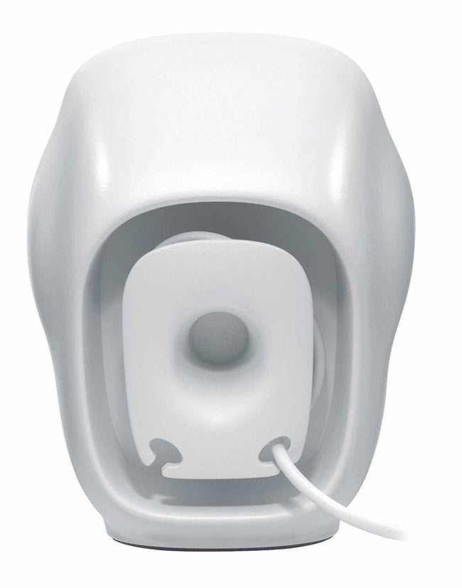 Your desk stays tidy with a system that keeps excess cord neatly stowed away in the back of your speakers.