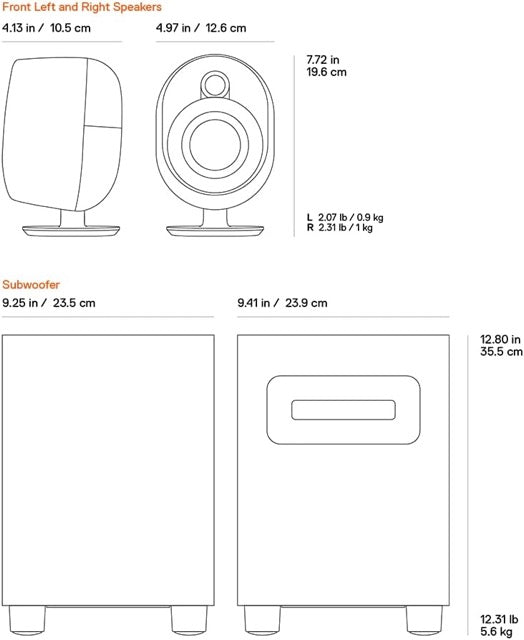 Speakers (W x D x H) - 104.9mm x 196.1mm x 126.2mm, 4.13in x 7.72in x 4.97in