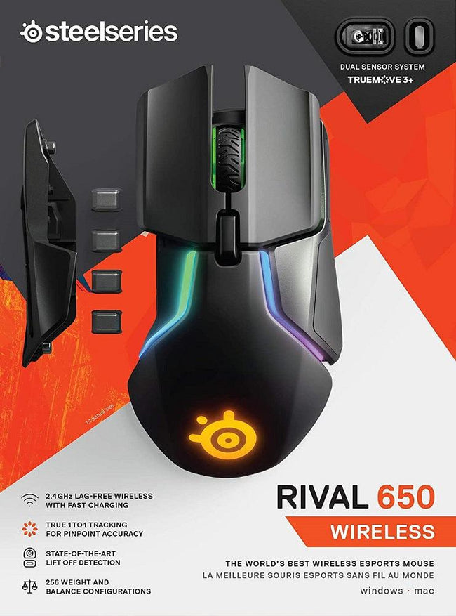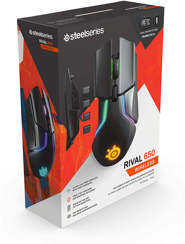 SteelSeries Mouse Rival 650 Quantum Wireless Gaming Mouse - Rapid Charging Battery - 12, 000 Cpi Truemove3+ Dual Optical Sensor - Low 0.5 Lift-Off Distance - 256 Weight Configurations - 8 Zone RGB Lighting
