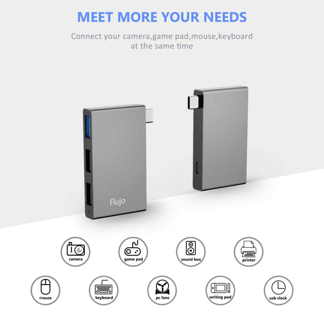 Flujo CH-15-A USB-C & Micro USB - 1 x USB3.0, 2 x USB2.0 (Grey)