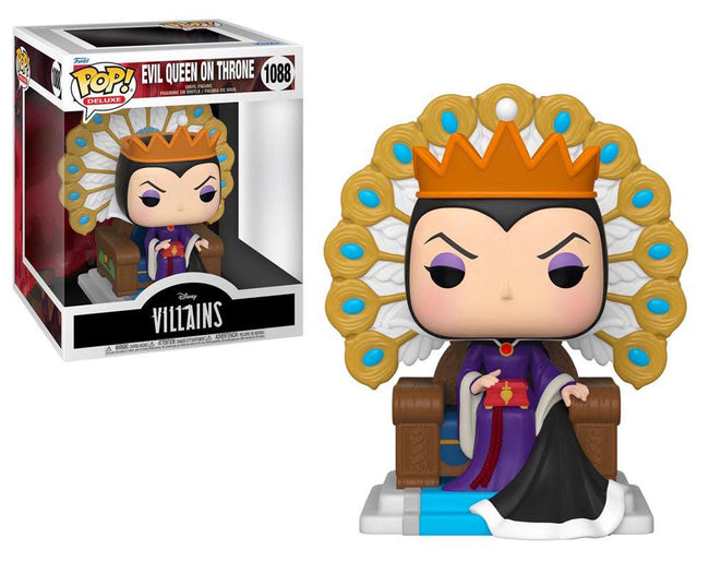This Disney Villains Evil Queen on Throne Deluxe Pop! Vinyl Figure comes packaged in a window display box. Ages 3 and up