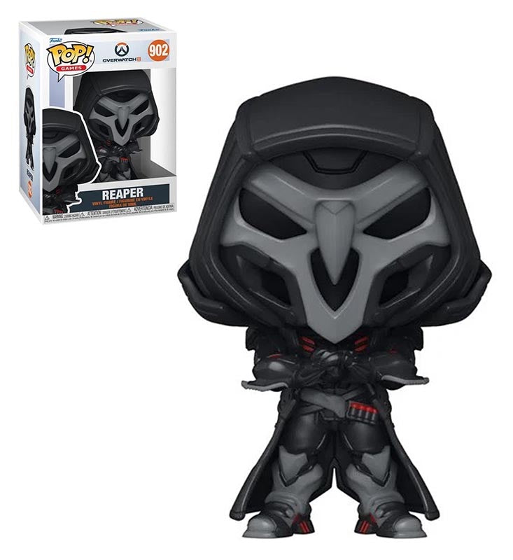 This Overwatch 2 Reaper Pop! Vinyl Figure #902 measures approximately 3 3/4-inches tall. Comes packaged in a window display box.