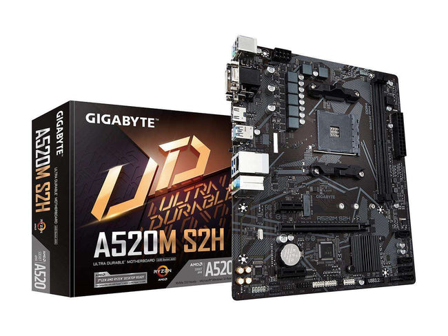 GIGABYTE A520M S2H mATX AM4 4+3 Phases Digital PWM, GIGABYTE Gaming GbE LAN, NVMe PCIe 3.0 x4 M.2, 3 Display Interfaces, Q-Flash Plus, RGB Fusion 2.0, Motherboard
