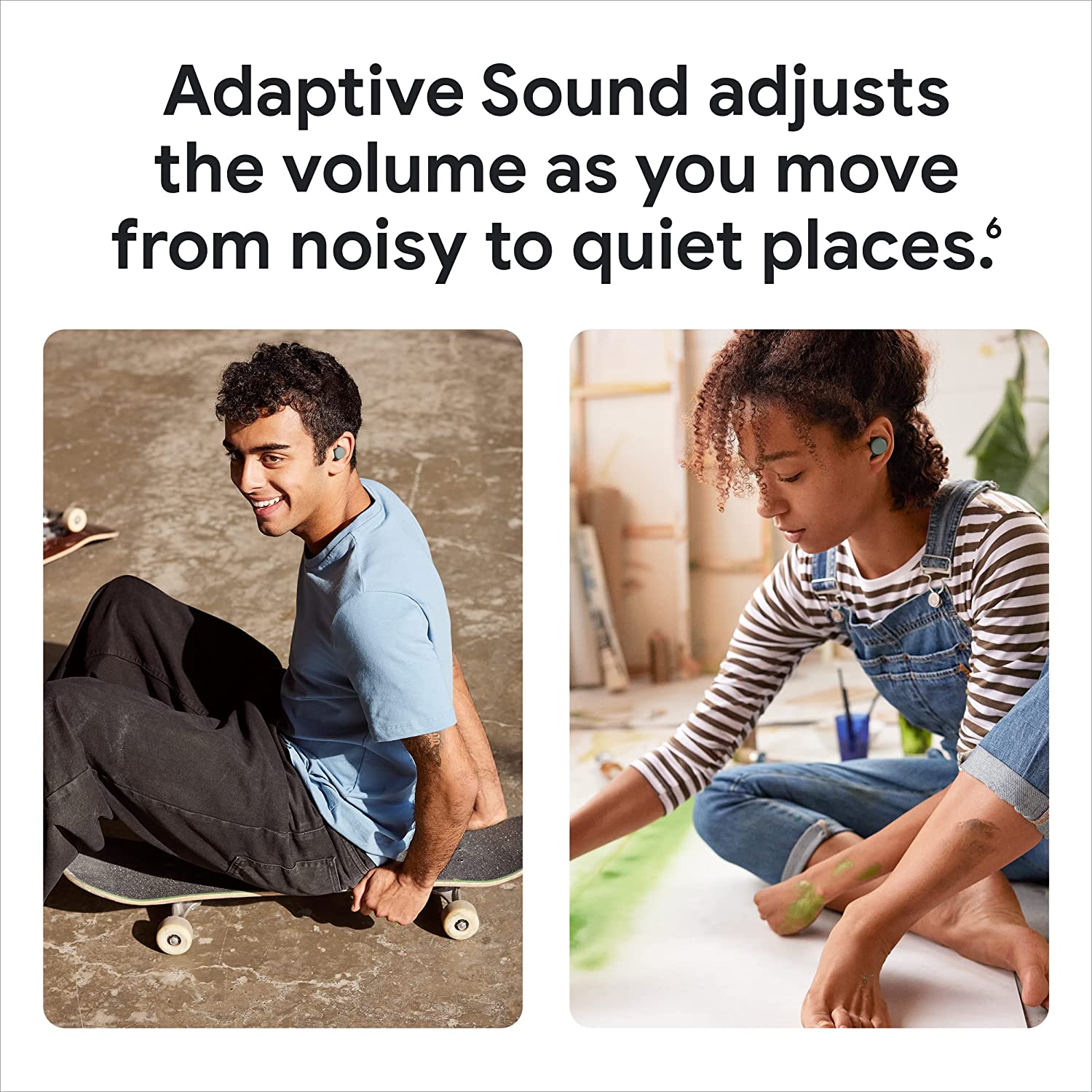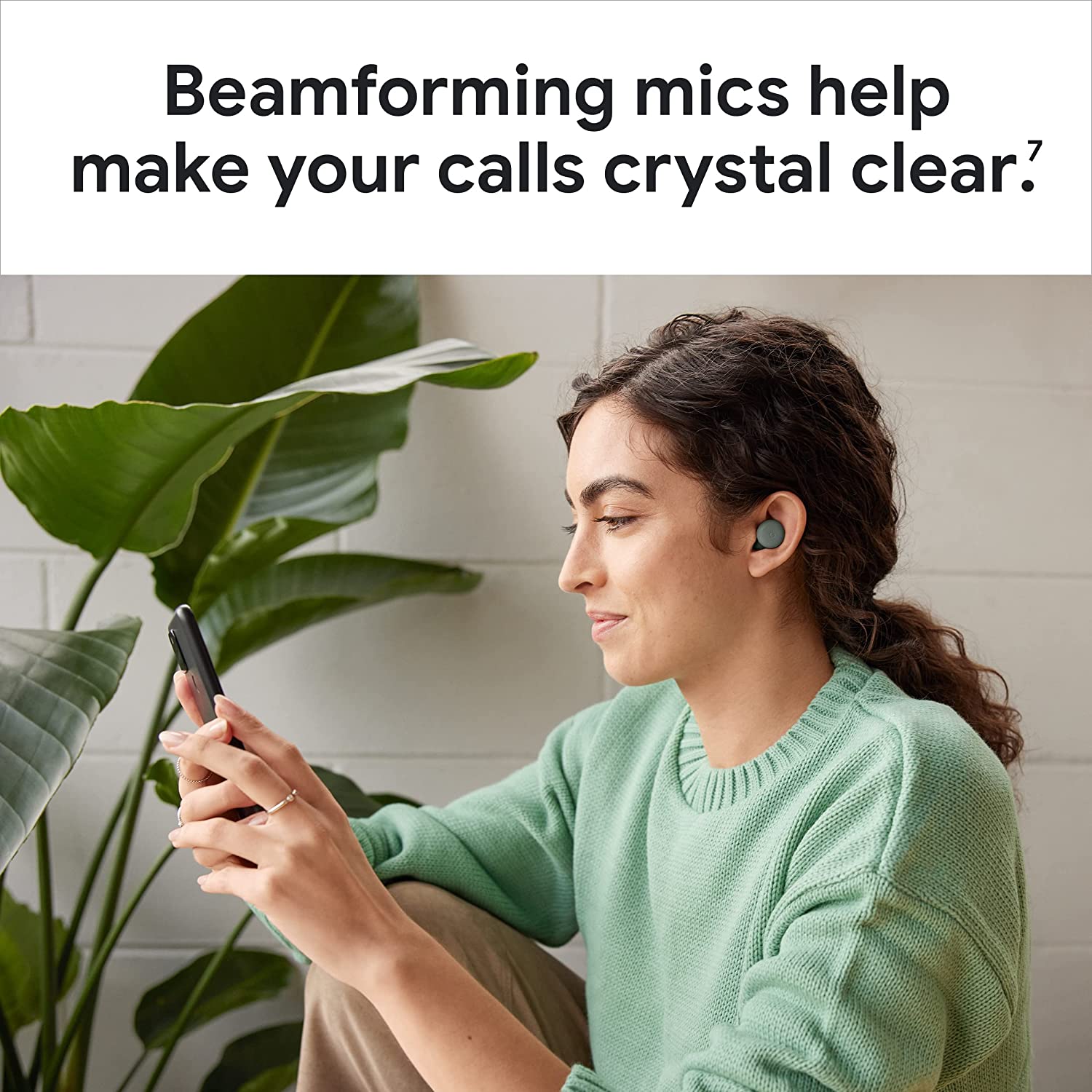 Pixel Buds A-Series bring you rich, high-quality sound for a lot less than you’d expect. Their beamforming mics help make calls crystal clear.[6] The flush-to-ear design and the stabilizer arc keep the earbuds comfortably in place. To play music, check the weather, or have notifications read to you, just say “Hey Google,” or press and hold the earbud for help.[2] And with up to 5 hours of listening time on one charge or up to 24 hours using the charging case, you can keep listening anywhere.[1] [1]All listening times are approximate and were measured using music playback and talk with pre-production hardware and software, with fully charged Pixel Buds A-Series and case, and other features disabled. Case is used to recharge Pixel Buds A-Series when their batteries are depleted. Charging times are approximate. Use of other features will decrease battery life. Battery life depends on device, features enabled, usage, environment and many other factors. Actual battery life may be lower. [2]Google Assistant requires a Google Assistant-enabled Android 6.0 or newer device, Google Account, and an internet connection. Data rates may apply. For available languages and minimum requirements go to g.co/pixelbuds/help.