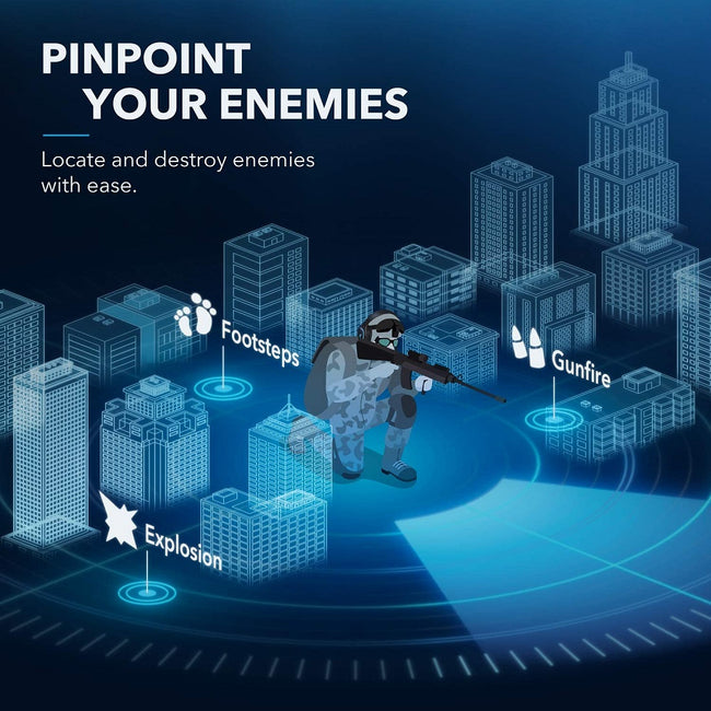 Precision HearingThanks to a unique driver enclosure, in-game audio is delivered with hyper precision. Locating sounds such as footsteps and gunfire becomes effortless. And when you hear your enemy first, you always have the upper hand. |