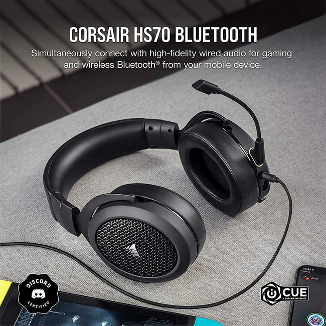 Corsair HS70 Bluetooth - Wired Gaming Headset with Bluetooth - Works with PC, Mac, Xbox Series X, Xbox Series S, Xbox One, PS5, PS4, Nintendo Switch, iOS and Android - Carbon/Black