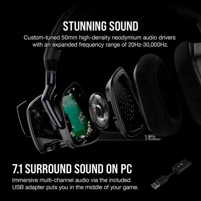 Hear everything in 7.1 surround sound from the lightest footstep to the most thundering explosion thanks to premium, custom-tuned 50mm high-density neodymium audio drivers with an expanded frequency range of 20Hz-30,000Hz.