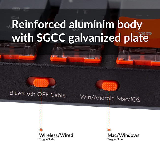 A 75% layout (84-key) hot-swappable white LED backlight wireless mechanical keyboard in a compact design that’s built for productivity and a tactile typing experience.