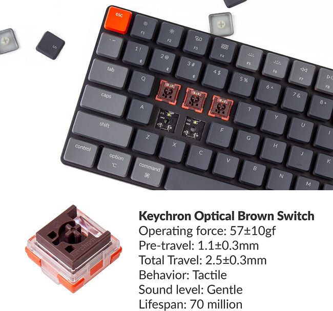 | Switch Type | Low profile Keychron Optical brown (Tactile) switches |
