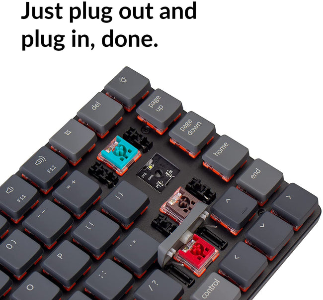 Hot-SwappableYou can easily hot-swap every low-profile optical switch to any low-profile optical (red, blue, brown) switch (buy separately) to customize your typing experience on the K3 without soldering (*This keyboard is NOT compatible with any conventional MX style mechanical switch). |